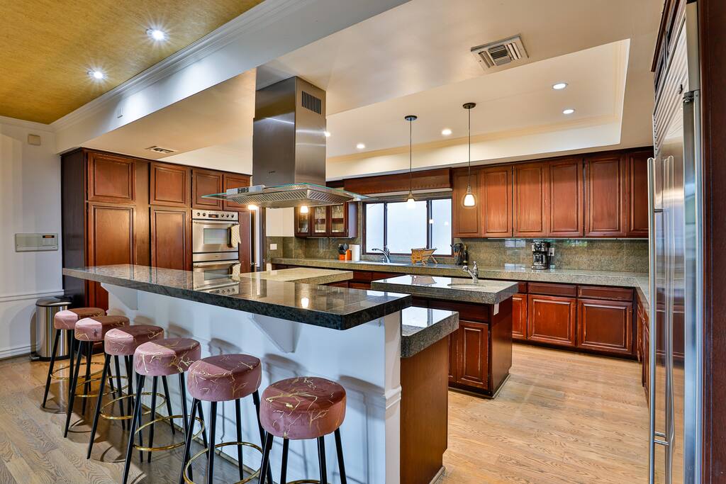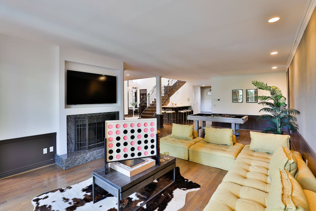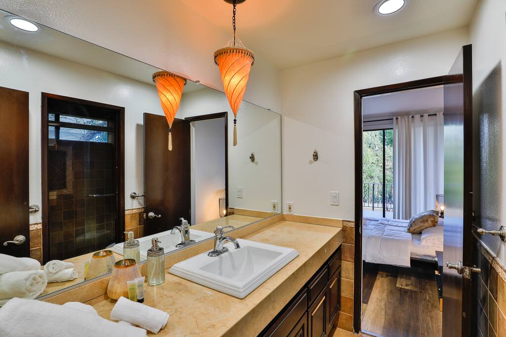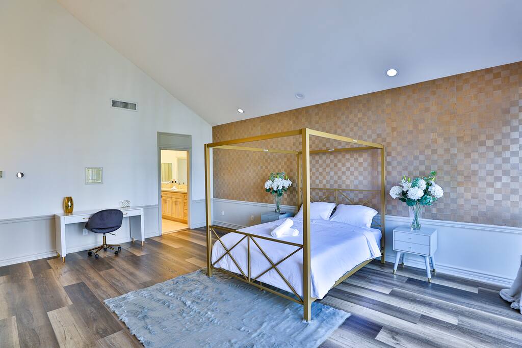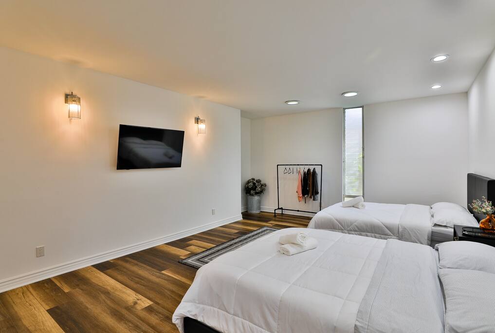 "Greg And Maylen's place it's just amazing, Huge, spacious, clean, etc. When you see it in person, is way better than the description. The communication with Maylen, has been the best one so far on my airbnb trips. I highly recommend this place, and I would definitely book it again." -Sergio Swanky, sophisticated and sumptuous are words to describe the interior of this glamorous 4,400 sq ft home formerly owned by a Hollywood celebrity. Highlights: - 3-story mansion has 6 bedrooms, with a total of 8 beds, (all queen beds) 3 full bathrooms and 1 half bathroom - The home sleeps 16 guests - Garage, and driveway with parking for 4-5 cars. - Fast Wifi with Smart TV's equipped with Netflix - Board Games Top (1st) Floor: Enter this home on the top (1st) floor through a street-level upper courtyard adjacent to the driveway. - Two bedrooms; a master with a queen-size bed and ensuite bath, and guest bedroom #2 which has two queen-size beds. - Master has an ensuite bath, huge, dazzling master closet, large slanted windows, a smart TV and a work desk and chair. - Ensuite master bathroom features an oversized soaking tub, custom tiled walk-in shower, and a huge, granite, double-sink vanity. Middle (2nd) Floor The second (middle) floor of the home has an open floor plan containing the kitchen, living room, game room with pool table, and formal dining room. The gourmet kitchen boasts gorgeous, extra-thick black granite counters, plenty of cabinet space, kitchen island with sink, state of the art stainless steel appliances including a french door sub-zero fridge, dual convection oven, gas range and dishwasher. The breakfast bar offers stool seating for six; below a stunning modern, rectangular, crystal chandelier. There is a covered, outdoor teak-wood dining table with seating for six, on a balcony just off the kitchen. A game area with a pool table divides the kitchen from the living room. (This home has games for the whole family, such as giant jenga, monopoly, etc.) There’s a corner bar beside the pool table with stool seating for four. A large Smart TV sits above the polished granite fireplace. A panel of sliding glass doors lead from the living room out to a balcony overlooking the courtyard and pool. The formal dining room has a large modern-farmhouse style table that seats ten guests. Floor to ceiling windows offer guests a calming view of azure skies and lush green courtyard foliage. It’s like dining in the treetops! A dramatic, contemporary stone fireplace in the middle of the room and a stylish circular wall cut-out at the back of the room are architectural details that add an ambiance of sophistication and grandeur to the dining room. Lower (3rd) Floor: The lower (3rd) floor of this Sherman Oaks mansion has four bedrooms, and also opens up to the outdoor courtyard with dining area, outdoor kitchen and pool. Bedroom #3 has a queen-size bed, bedroom #4 has two queen beds, bedroom #5 has a queen, and bedroom #6 has a queen. These lower level bedrooms share two bathrooms. Pool Heating (not available at the moment): If you'd like to enjoy a warm swim or soak, we offer pool heating for an additional $100 per night. If you'd like us to heat the pool before your arrival, just let us know and we'll send someone on our team to do so in the morning. Please note, the pool can take anywhere from 5-10+ hours to heat up, depending on the outside temperature. Check-in and checkout times: We're happy to offer early check-in or late checkout if we can, but it depends on availability. There is an extra fee of $50 per hour. Pets are welcome! But there's a $250 fee per pet, and we need to approve it first, so just message us the details.
