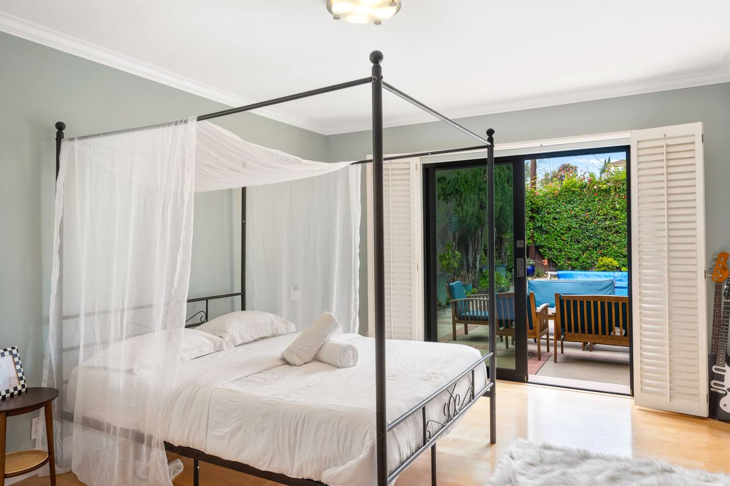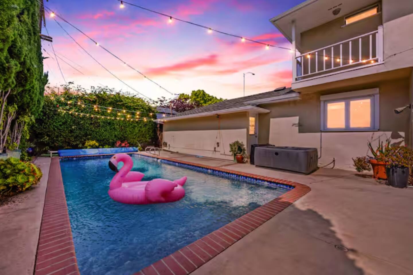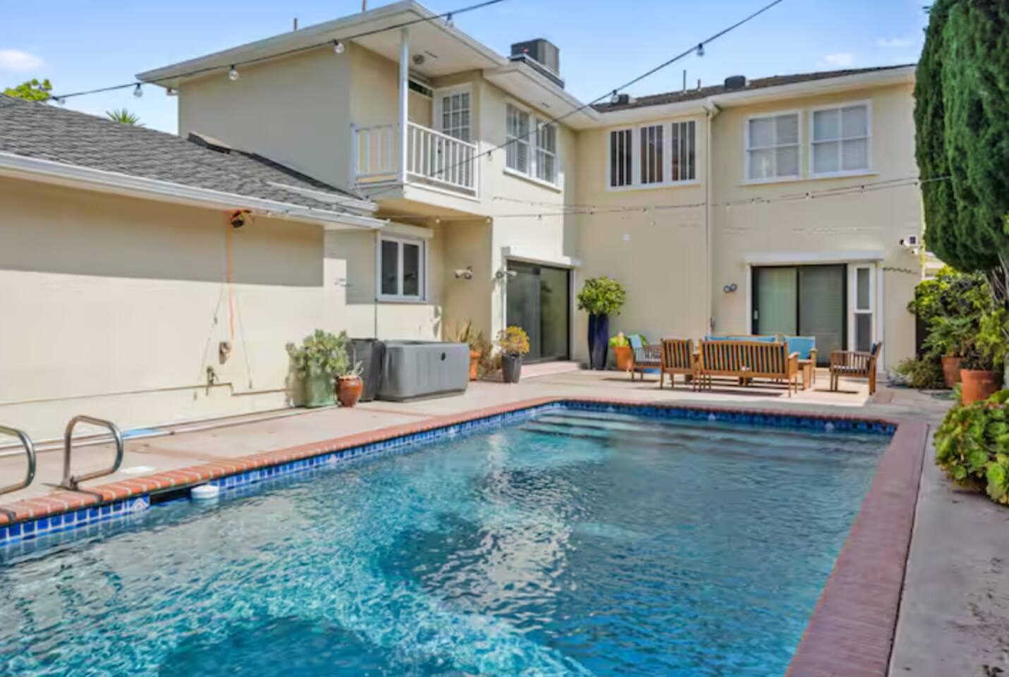 "This rental is in the heart of LA, making it a fantastic location for those who want to be centrally located near popular tourist spots. The home itself is beautiful, maintaining its classic charm with vintage details—like tubs with separate hot and cold knobs that require adjusting to get the perfect temperature." -Lynette ✨ Spacious & Stylish Retreat: Six beautifully decorated bedrooms with 11 cozy beds, offering comfort and relaxation for your group. ✨ Private Pool & Hot Tub: Lounge by the sparkling pool or unwind in the hot tub for the ultimate California escape. ✨ Chef’s Kitchen: A fully equipped chef’s kitchen, perfect for cooking and dining together. ✨ Convenient Parking: Private driveway and street parking for hassle-free convenience. ✨ Pet-Friendly: Bring your furry friends with prior approval (pet fee applies). WHY CHOOSE THIS HOME? ✨ Expansive Living Space: With two stories and 3,500 square feet, there’s room for everyone to relax and feel the Beverly Hills vibe. ✨ Chef’s Kitchen: Fully stocked with appliances and cookware, perfect for creating memorable meals in your home away from home. ✨ Poolside Paradise: Unwind by the unheated pool or soak in the hot tub under the California sun and sky, surrounded by beautiful natural landscaping. ✨ Entertainment Galore: The game room is a hit for guests of all ages, featuring ping pong, foosball, and arcade games. ✨ Unbeatable Location: Steps from Beverly Hills’ finest shopping, dining, and attractions. ✨ Outdoor Oasis: Enjoy morning coffee or brainstorming sessions on the patio and relax under the beautiful night skies. ✨ Work-Friendly: High-speed WiFi makes remote work or trip planning effortless. ✨ Prime Beverly Hills Location: Steps from Rodeo Drive and Hillcrest Country Club, with grocery stores and restaurants nearby. ✹ SLEEPING ARRANGEMENTS | 6 Bedrooms • 11 Beds ✹ ✨ Bedroom 1: One queen-size bed with an elegant canopy for ultimate California vibes. ✨ Bedroom 2: One cozy twin-size bed in a vibrant, peaceful space. ✨ Bedroom 3: One queen-size bed with mirrored accents for a spacious retreat. ✨ Bedroom 4: Two queen-size beds with warm tones and natural light. ✨ Bedroom 5: Two queen-size beds with a desk and charming decor. ✨ Bedroom 6 (Gameroom): Pull-out bed (two singles) with a foosball table and gaming setup. ✨ Bonus Sleeping Space: Enjoy a comfy twin bed with a pull-out trundle tucked into the living room — perfect for extra guests. LOCAL ATTRACTIONS ✨ 4-5 mins to Ralphs: Shop for groceries and essentials nearby. ✨ 5 mins to Factor's Famous Deli: Enjoy hearty sandwiches and classic deli fare. ✨ 10 mins to Il Moderno: Treat yourself to Italian-inspired meals. ✨ 4 mins to The Coffee Bean & Tea Leaf: Perfect for a quick coffee or snack. ✨ 10 mins to Rodeo Drive: Discover luxury shopping and fine dining. ✨ 2 mins to Hillcrest Country Club: Play golf or tennis in a premium setting. ✨ 15 mins to LACMA: Explore the west’s largest art museum. ADDITIONAL DETAILS ✔ Stocked Property: Essentials for a worry-free stay, including linens and toiletries. ✔ Coffee Bar: Start your mornings right with your drip coffee maker, complete with provided starter coffee for a perfect brew. ✔ Kid-Friendly: Pack-n-play is available upon request to accommodate families with little ones. ✔ No Parties or Smoking: Help us maintain a peaceful and relaxing environment for all our guests. Experience the ultimate Beverly Hills vibe in this California retreat! Whether you’re here to relax or take advantage of being just steps away from upscale shopping, world-class dining, and vibrant entertainment, this home offers the perfect blend of comfort, style, and convenience. Your unforgettable California escape starts here! 🌟 ★Book Your Stay Today & Immerse Yourself in Your Dream California Getaway!★