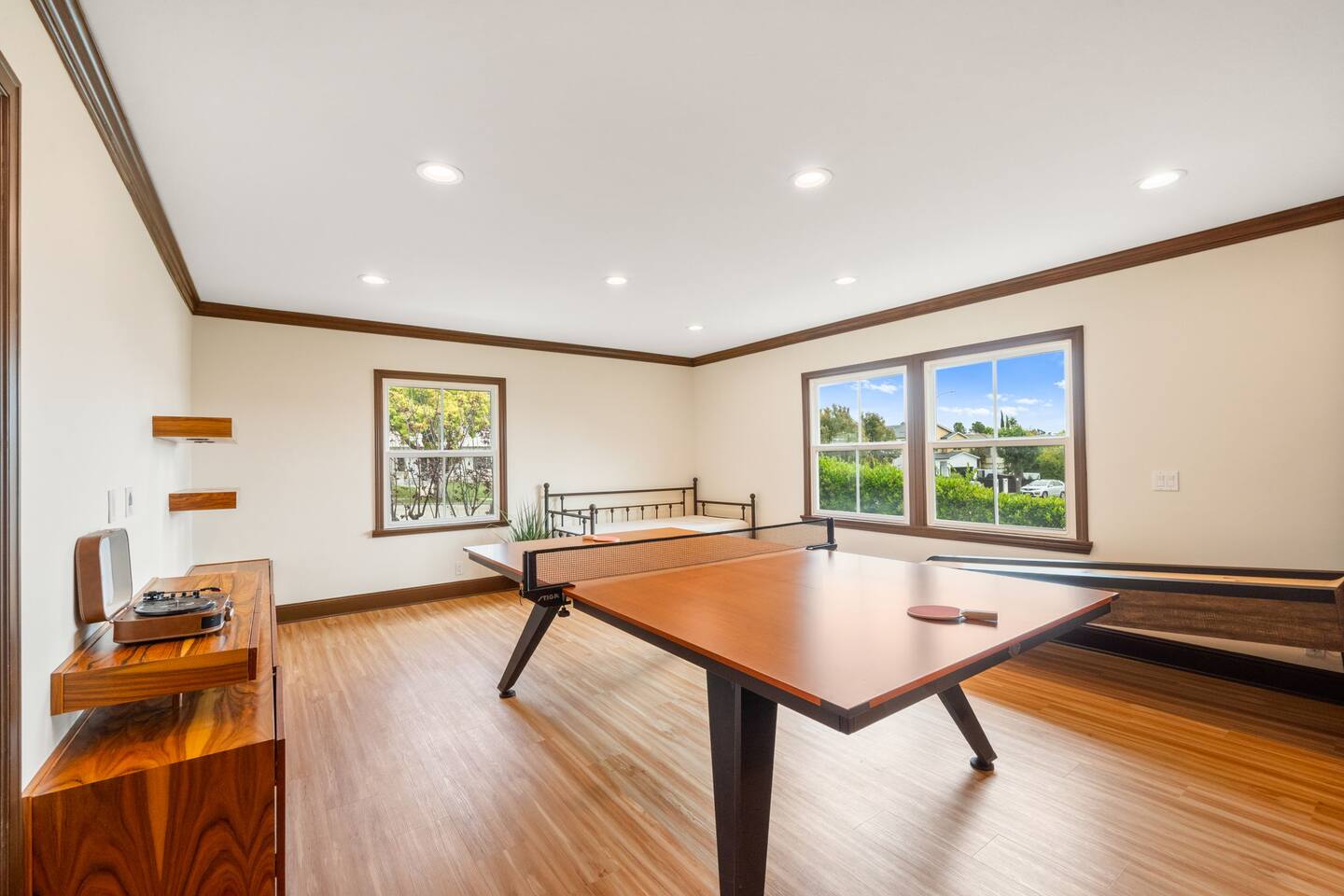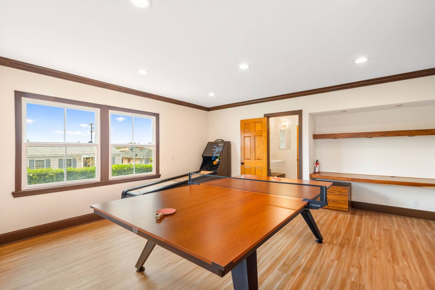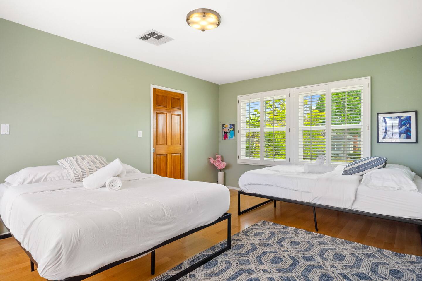 "This rental is in the heart of LA, making it a fantastic location for those who want to be centrally located near popular tourist spots. The home itself is beautiful, maintaining its classic charm with vintage details—like tubs with separate hot and cold knobs that require adjusting to get the perfect temperature." -Lynette ✨ Spacious & Stylish Retreat: Six beautifully decorated bedrooms with 11 cozy beds, offering comfort and relaxation for your group. ✨ Private Pool & Hot Tub: Lounge by the sparkling pool or unwind in the hot tub for the ultimate California escape. ✨ Chef’s Kitchen: A fully equipped chef’s kitchen, perfect for cooking and dining together. ✨ Convenient Parking: Private driveway and street parking for hassle-free convenience. ✨ Pet-Friendly: Bring your furry friends with prior approval (pet fee applies). WHY CHOOSE THIS HOME? ✨ Expansive Living Space: With two stories and 3,500 square feet, there’s room for everyone to relax and feel the Beverly Hills vibe. ✨ Chef’s Kitchen: Fully stocked with appliances and cookware, perfect for creating memorable meals in your home away from home. ✨ Poolside Paradise: Unwind by the unheated pool or soak in the hot tub under the California sun and sky, surrounded by beautiful natural landscaping. ✨ Entertainment Galore: The game room is a hit for guests of all ages, featuring ping pong, foosball, and arcade games. ✨ Unbeatable Location: Steps from Beverly Hills’ finest shopping, dining, and attractions. ✨ Outdoor Oasis: Enjoy morning coffee or brainstorming sessions on the patio and relax under the beautiful night skies. ✨ Work-Friendly: High-speed WiFi makes remote work or trip planning effortless. ✨ Prime Beverly Hills Location: Steps from Rodeo Drive and Hillcrest Country Club, with grocery stores and restaurants nearby. ✹ SLEEPING ARRANGEMENTS | 6 Bedrooms • 11 Beds ✹ ✨ Bedroom 1: One queen-size bed with an elegant canopy for ultimate California vibes. ✨ Bedroom 2: One cozy twin-size bed in a vibrant, peaceful space. ✨ Bedroom 3: One queen-size bed with mirrored accents for a spacious retreat. ✨ Bedroom 4: Two queen-size beds with warm tones and natural light. ✨ Bedroom 5: Two queen-size beds with a desk and charming decor. ✨ Bedroom 6 (Gameroom): Pull-out bed (two singles) with a foosball table and gaming setup. ✨ Bonus Sleeping Space: Enjoy a comfy twin bed with a pull-out trundle tucked into the living room — perfect for extra guests. LOCAL ATTRACTIONS ✨ 4-5 mins to Ralphs: Shop for groceries and essentials nearby. ✨ 5 mins to Factor's Famous Deli: Enjoy hearty sandwiches and classic deli fare. ✨ 10 mins to Il Moderno: Treat yourself to Italian-inspired meals. ✨ 4 mins to The Coffee Bean & Tea Leaf: Perfect for a quick coffee or snack. ✨ 10 mins to Rodeo Drive: Discover luxury shopping and fine dining. ✨ 2 mins to Hillcrest Country Club: Play golf or tennis in a premium setting. ✨ 15 mins to LACMA: Explore the west’s largest art museum. ADDITIONAL DETAILS ✔ Stocked Property: Essentials for a worry-free stay, including linens and toiletries. ✔ Coffee Bar: Start your mornings right with your drip coffee maker, complete with provided starter coffee for a perfect brew. ✔ Kid-Friendly: Pack-n-play is available upon request to accommodate families with little ones. ✔ No Parties or Smoking: Help us maintain a peaceful and relaxing environment for all our guests. Experience the ultimate Beverly Hills vibe in this California retreat! Whether you’re here to relax or take advantage of being just steps away from upscale shopping, world-class dining, and vibrant entertainment, this home offers the perfect blend of comfort, style, and convenience. Your unforgettable California escape starts here! 🌟 ★Book Your Stay Today & Immerse Yourself in Your Dream California Getaway!★