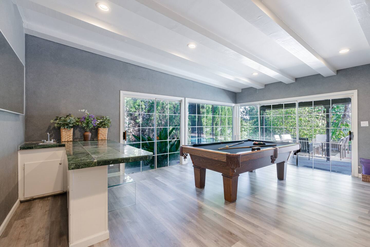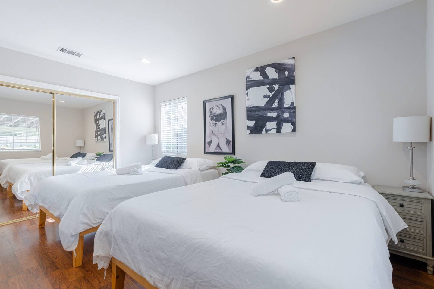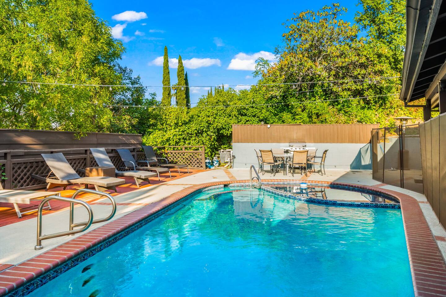 "Extremely accommodating hosts. Always communicated effectively and in a timely fashion. They even delivered a cake and flowers to the house for my daughter’s 18th birthday. House was beautiful and a great location. Would definitely stay again!" -Felisha Hello! Thank you for considering our beautiful home for your upcoming stay. We'd like to share some important details to make sure your experience is a wonderful one. - Enjoy a cozy, one-level living experience in our 4-bedroom, 3.5-bathroom house with 6 beds - Sink into a good night's sleep with our comfortable memory foam beds - Stay connected with ease, thanks to our high-speed internet and smart TV's - Board games for the whole family We can't wait to host you and make sure you have an unforgettable experience! Pool and Jacuzzi Heating: If you'd like to enjoy a warm swim or soak, we offer pool and Jacuzzi heating for an additional $100 per night. If you'd like us to heat the pool before your arrival, just let us know and we'll send someone on our team to do so in the morning. Please note, the pool can take anywhere from 5-10+ hours to heat up, depending on the outside temperature, and the Jacuzzi takes about 45 minutes to 1 hour. Keep in mind, you can only heat one at a time, either the pool or the spa, not both. Safety First: For your safety, we have installed a pool safety fence around our pool/spa area. This fence is not shown in our listing photos, but it is there to keep children safe until a responsible adult is around to supervise. We appreciate your understanding of this important safety measure. Check-in and checkout times: We're happy to offer early check-in or late checkout if we can, but it depends on availability. There is an extra fee of $50 per hour. Pets are welcome! But there's a $250 fee per pet, and we need to approve it first, so just message us the details. 24/7 Availability: Myself or my assistant is always available to assist you, 24/7. If you have any questions, just let us know! We're here to make sure you have an enjoyable stay. FAQ Why does the price change? Don't worry, it's just our dynamic pricing software working its magic. It adjusts rates based on demand and other factors to make sure you get the best value. Can you tell me more about the Noiseaware system? Absolutely! The Noiseaware gadget is a helpful tool that lets us know if the noise level inside and outside the property goes above a certain level(to prevent party level noise). It's just a noise monitor, not a recording device, so your privacy is always respected. It's solely to prevent parties as Los Angeles County is very strict with this. The pool has some leaves and twigs, what can you do about it? Our pool is surrounded by beautiful nature, which can sometimes lead to leaves and twigs ending up in the water. On windy days, there may be more leaves than usual, but we do have a weekly pool cleaning service to keep it in tip-top shape. In the meantime, you're welcome to use the pool net to remove any leaves or twigs you may find. Do you have enough serving dishes and utensils for big groups? Yes, we have enough utensils for up to 16 guests, so you're all set for a big gathering! Can we book a 1-night stay? Unfortunately, our minimum stay is 2 nights during weekdays and 3 nights during the weekends. Can we request for a towel change? We don't offer hotel-style amenities, but we do provide one regular towel and one pool towel for each guest for the entire stay. If you need clean towels, you're welcome to use our washing and drying machines. Can you explain the pool heating rates? Sure thing! The pool heating rate is $100 per day. If you're staying for 5 nights, for example, it would be $500. If you want to start heating the pool on the 2nd day, you'll only pay from that day onward. If you'd like us to heat the pool before your arrival, just add an additional $100 to the rate. Do you offer discounts on pool heating rates? Unfortunately, we don't offer discounts on pool heating rates. Our rates are already lower than most other pool houses, many of which charge between $100-$150 per day, so this is the best price we can offer. How do I operate the pool/Jacuzzi? Don't worry, it's super easy! Once you've paid for the pool heating, we'll send you a video with instructions on how to use the pool and spa. Just follow the video, and you'll be all set. Is there a smoking room or is smoking allowed on the property? I'm sorry, but smoking is not allowed anywhere inside or outside the house, including the backyard and pool area. We appreciate your cooperation in keeping our property smoke-free. This is also a fire hazard zone so no fire anywhere outside please. We hope that answers all your questions! Let us know if there's anything else we can help with.