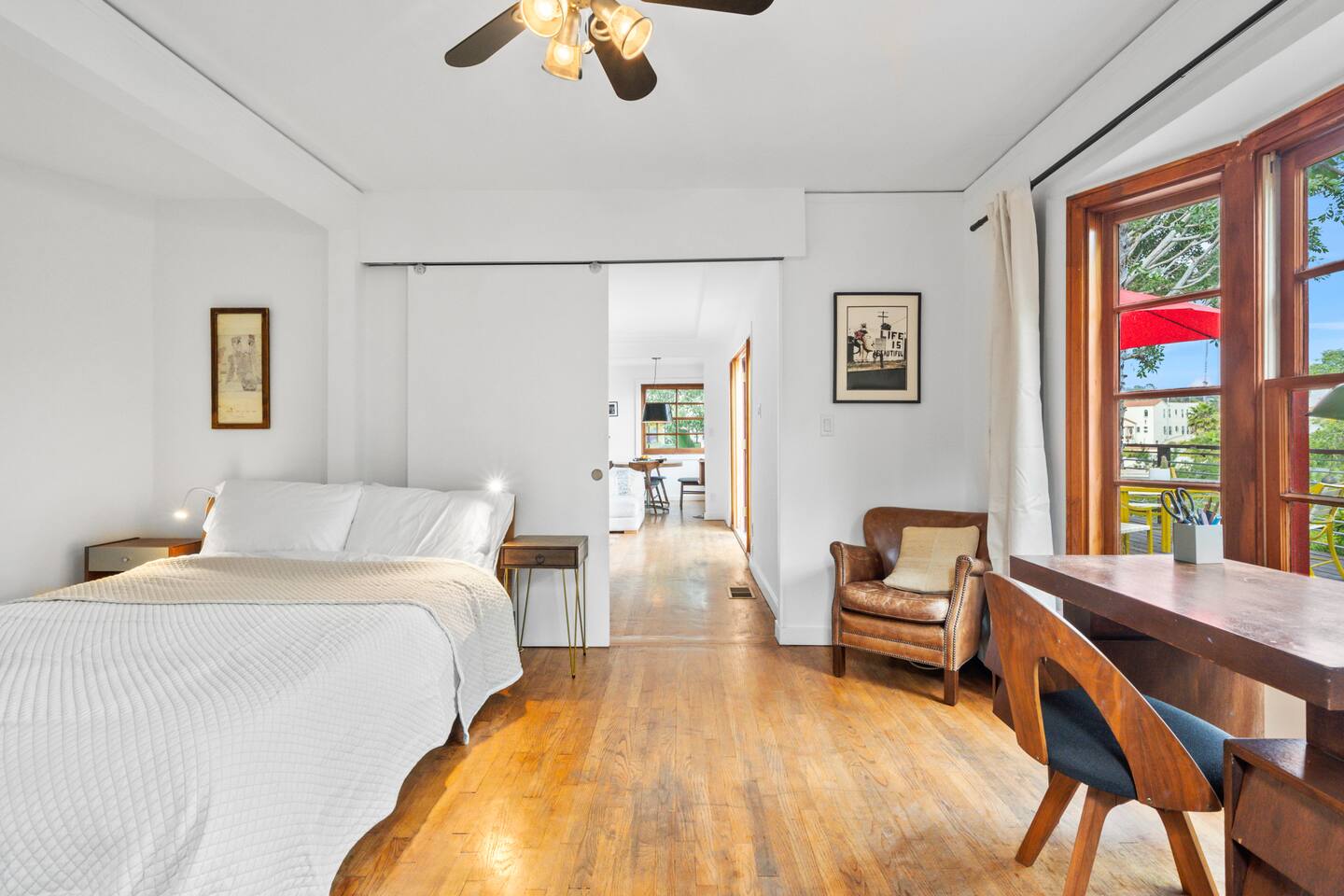 Immerse yourself in a true Silver Lake retreat! This charming home boasts a fully stocked kitchen, and breathtaking city views framed by trees. Experience the vibrant neighborhood, then unwind on one of two spacious decks. This French-style gem offers the perfect blend of urban access and a nature-infused escape. With two bedrooms, two bathrooms and an Art Studio, it's an ideal getaway for couples or friends. Send us a message with any questions at all and personalized recommendations!