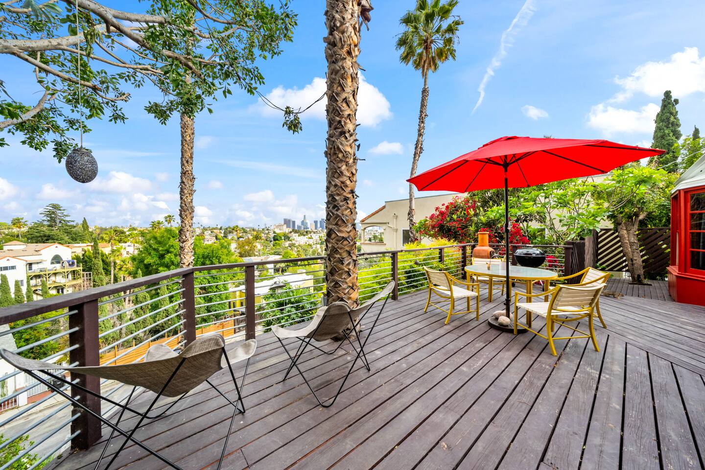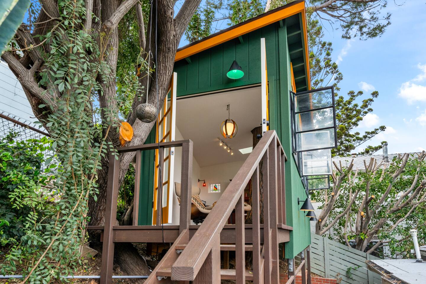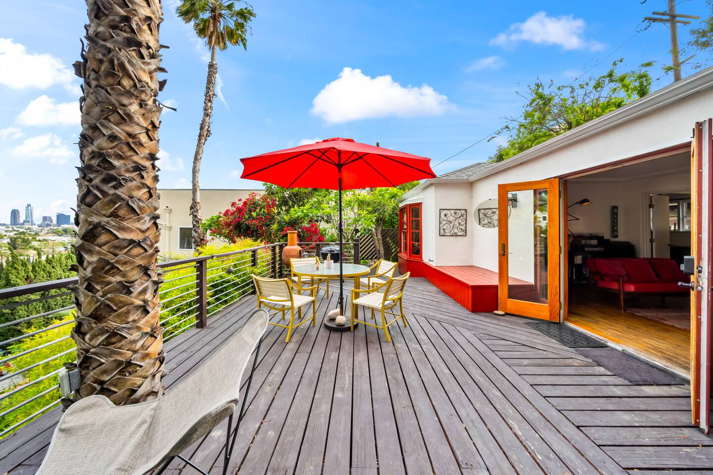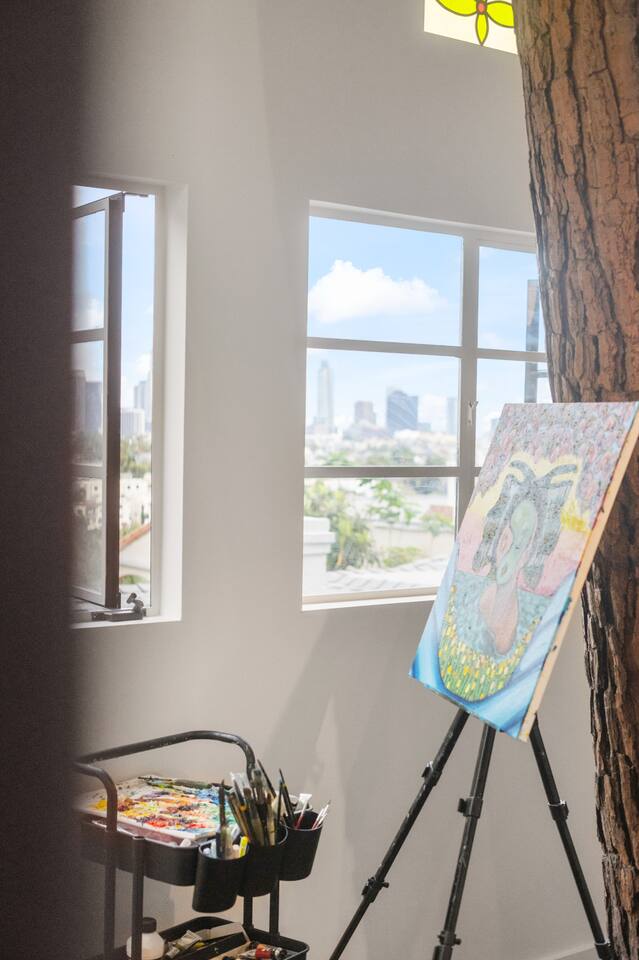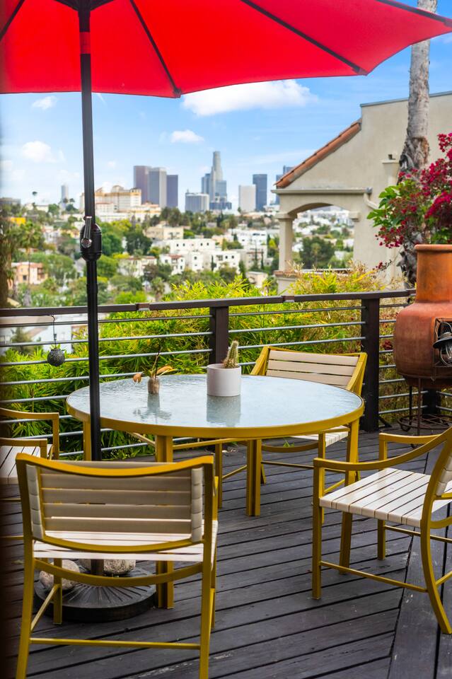 This home is a haven for travelers who crave character, comfort, and a place to slow down. It’s ideal for couples on a romantic getaway, friends exploring LA, solo adventurers, and especially creatives or remote workers looking for a space that inspires and feels like home. Perched in a quiet Silver Lake neighborhood, this stylish home features an incredible private deck with panoramic views — perfect for sunset dinners, yoga at sunrise, or wine under the stars. The space includes a grill, fast WiFi, a fully stocked kitchen, a dedicated art studio, and thoughtful details throughout. You’re just minutes from Echo Park Lake, Sunset Blvd, Silver Lake Reservoir, and some of LA’s best indie coffee shops, local boutiques, and vibrant eateries — but you’ll love coming back to your peaceful hillside escape. If you’re drawn to spaces with personality, natural beauty, and a dash of magic, this is your spot. Come stay, create, unwind — and leave feeling recharged. We’d be happy to host you! AMENITIES 🌿High speed WiFi 🌿Amazing views 🌿Private deck 🌿Grill 🌿Outdoor furniture 🌿Art Studio 🌿Dedicated workspace "I never write reviews but this place was truly special and deserves all the stars and more! Maylen is super responsive…you can’t find a better airbnb else where! Reach out to them and you will hear right back and you won’t be disappointed!" - Yimin "Greg & Maylen’s home was beautiful, unique, and had an exceptional view! We utilized every space including the tree house for morning yoga. It was so much fun and so convenient to local spots and restaurants in Silver Lake, and within walking distance of the family we were visiting! Would definitely stay here again if we find ourselves back in the neighborhood! Thank you!!" - Whitney Absolutely NO PARTIES whatsoever. Note: House has about 35 steps to the front entrance of the house, which leads directly into the front deck. Check-in and checkout times: We're happy to offer early check-in or late checkout if we can, but it depends on availability. There is an extra fee of $50 per hour. Pets Allowed – With prior approval and $250 pet fee per pet.