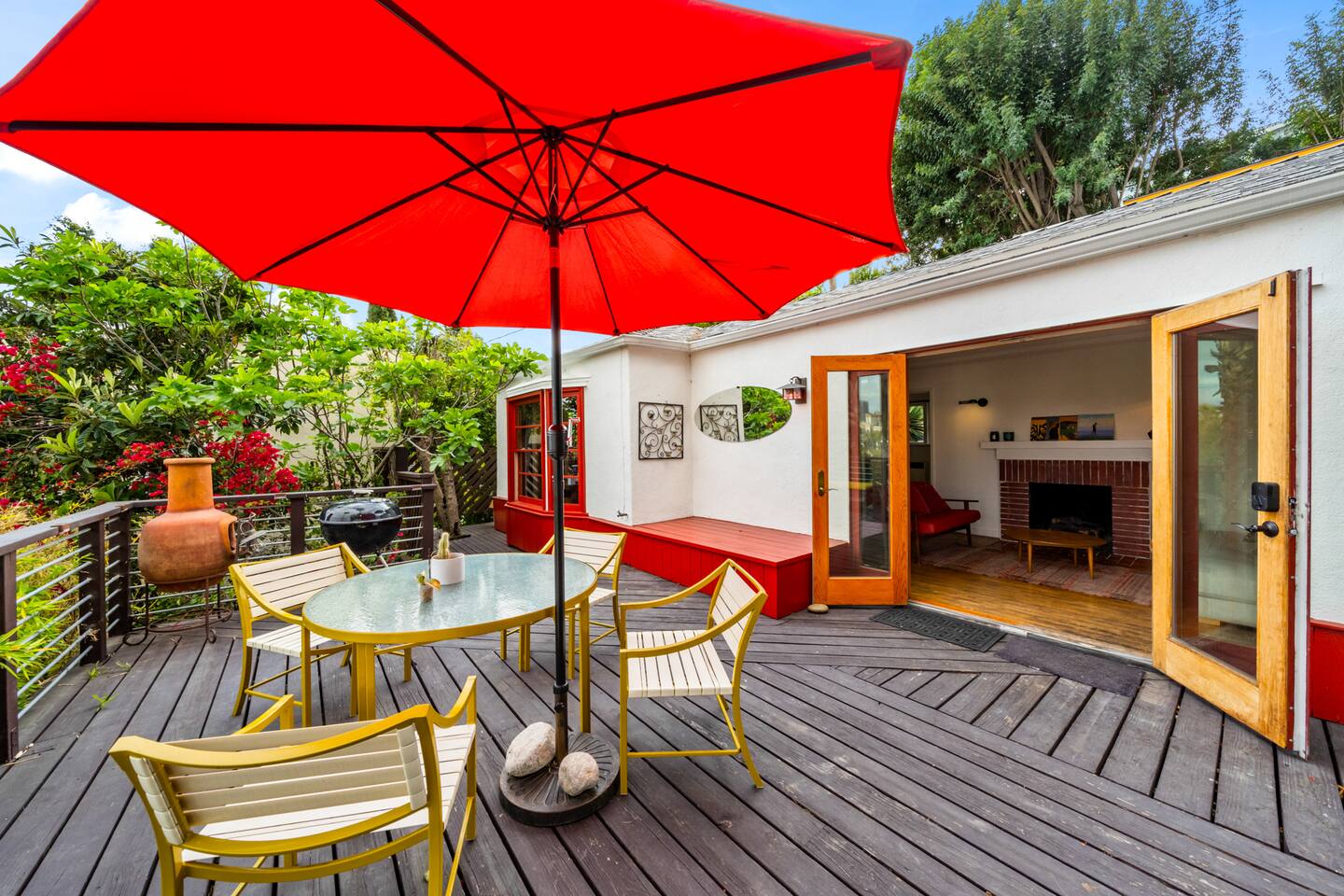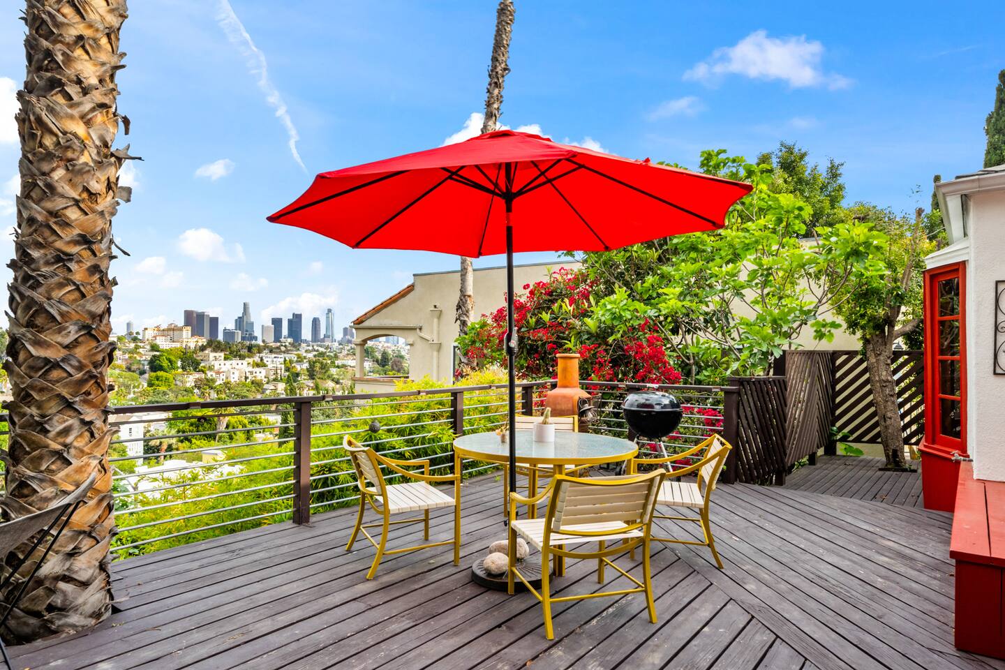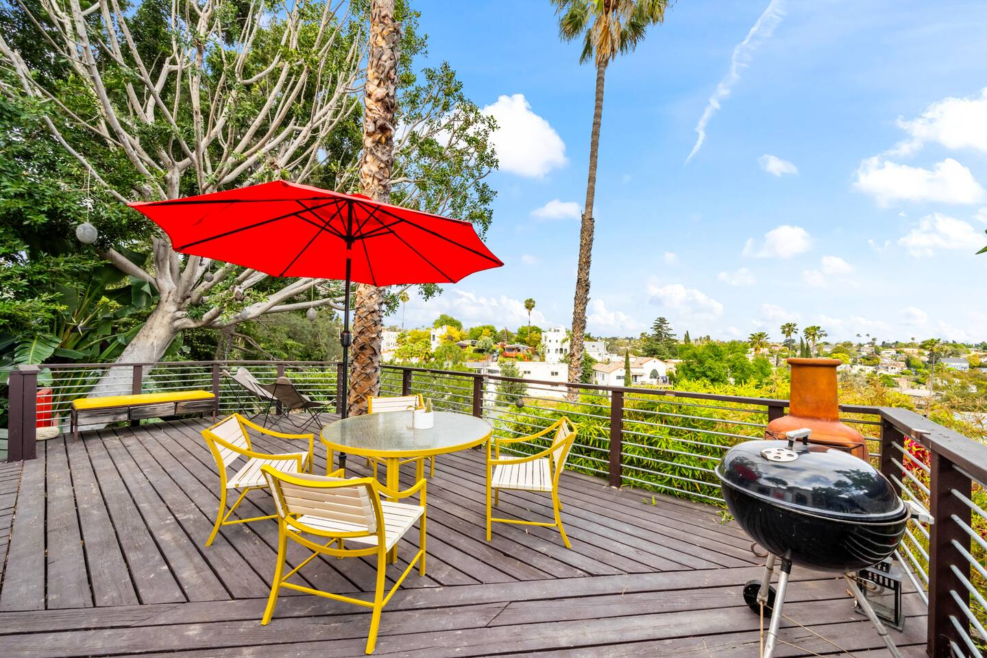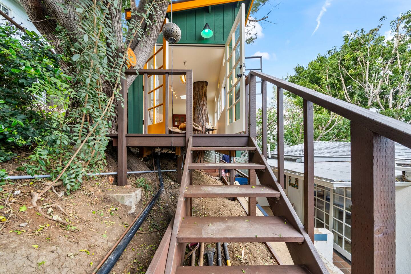 This home is a haven for travelers who crave character, comfort, and a place to slow down. It’s ideal for couples on a romantic getaway, friends exploring LA, solo adventurers, and especially creatives or remote workers looking for a space that inspires and feels like home. Perched in a quiet Silver Lake neighborhood, this stylish home features an incredible private deck with panoramic views — perfect for sunset dinners, yoga at sunrise, or wine under the stars. The space includes a grill, fast WiFi, a fully stocked kitchen, a dedicated art studio, and thoughtful details throughout. You’re just minutes from Echo Park Lake, Sunset Blvd, Silver Lake Reservoir, and some of LA’s best indie coffee shops, local boutiques, and vibrant eateries — but you’ll love coming back to your peaceful hillside escape. If you’re drawn to spaces with personality, natural beauty, and a dash of magic, this is your spot. Come stay, create, unwind — and leave feeling recharged. We’d be happy to host you! AMENITIES 🌿High speed WiFi 🌿Amazing views 🌿Private deck 🌿Grill 🌿Outdoor furniture 🌿Art Studio 🌿Dedicated workspace "I never write reviews but this place was truly special and deserves all the stars and more! Maylen is super responsive…you can’t find a better airbnb else where! Reach out to them and you will hear right back and you won’t be disappointed!" - Yimin "Greg & Maylen’s home was beautiful, unique, and had an exceptional view! We utilized every space including the tree house for morning yoga. It was so much fun and so convenient to local spots and restaurants in Silver Lake, and within walking distance of the family we were visiting! Would definitely stay here again if we find ourselves back in the neighborhood! Thank you!!" - Whitney Absolutely NO PARTIES whatsoever. Note: House has about 35 steps to the front entrance of the house, which leads directly into the front deck. Check-in and checkout times: We're happy to offer early check-in or late checkout if we can, but it depends on availability. There is an extra fee of $50 per hour. Pets Allowed – With prior approval and $250 pet fee per pet.