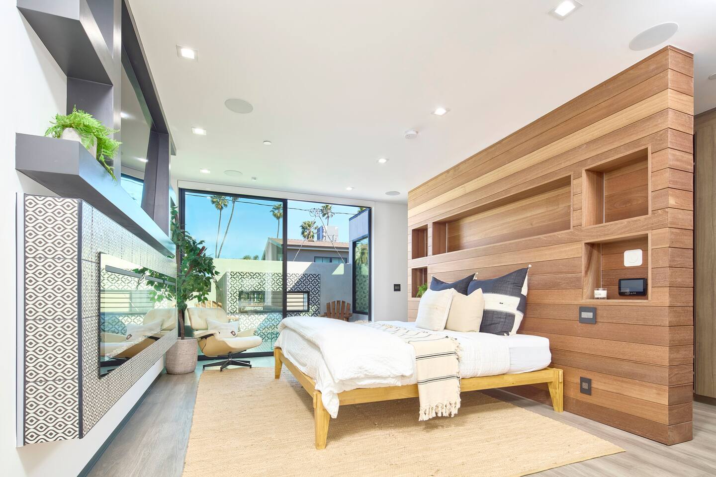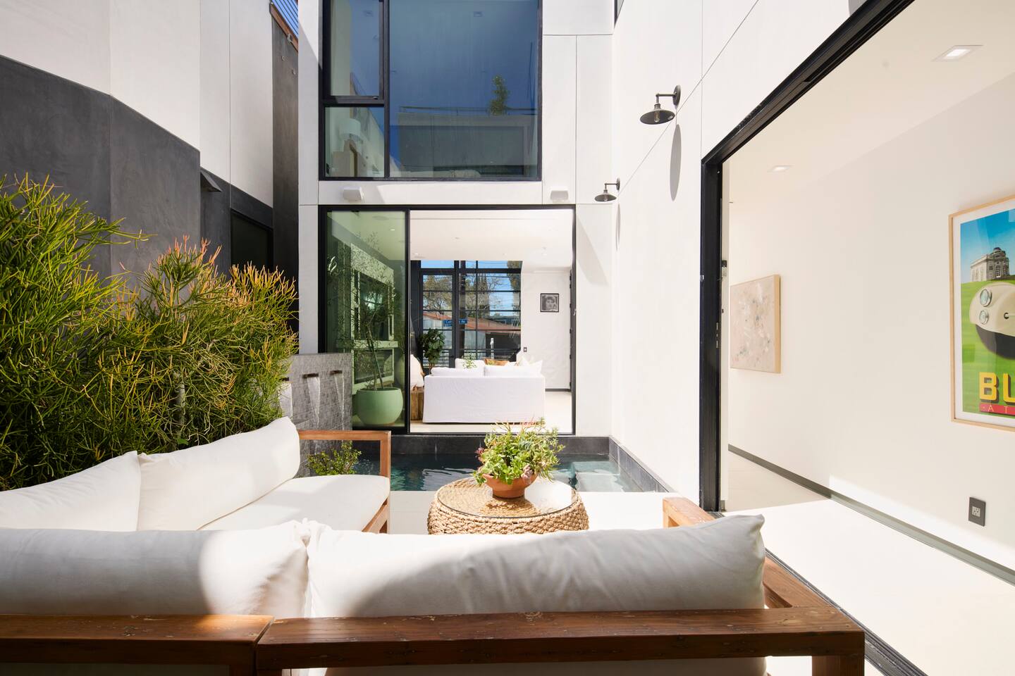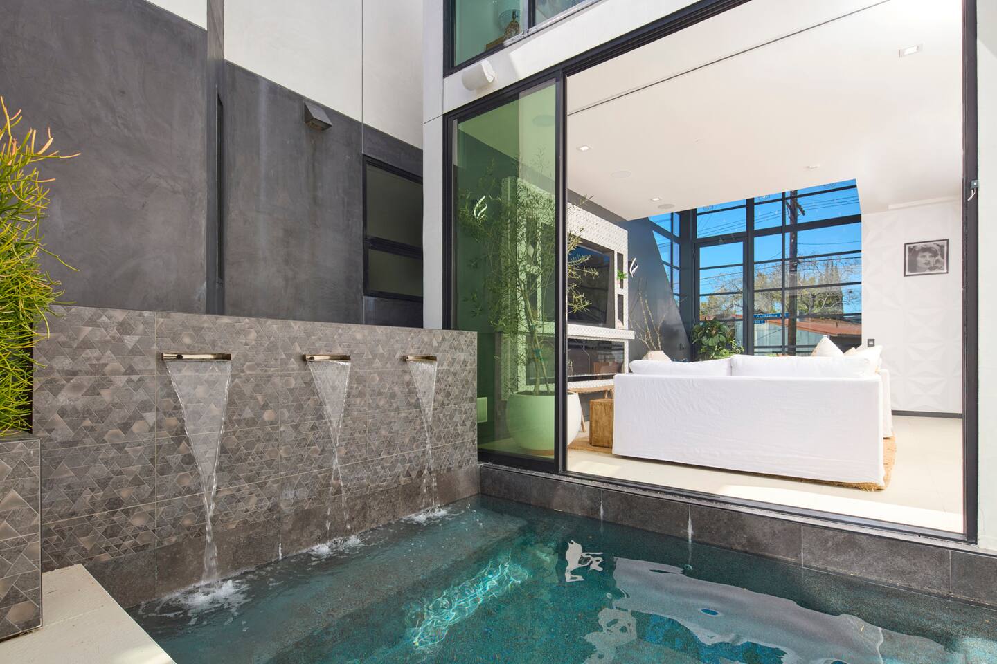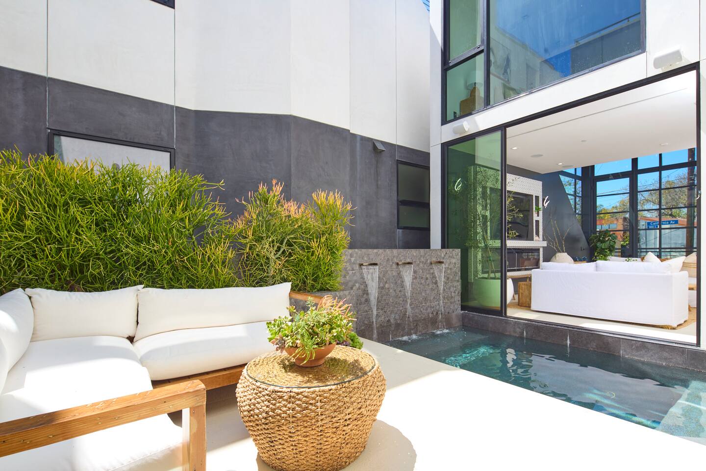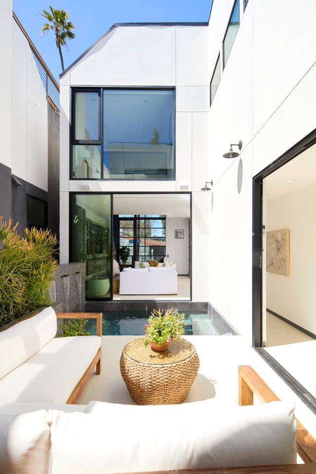 ABSOLUTELY NO PARTIES This impeccably designed 'Glass Lady' offers a luxurious, sunlit live/work oasis just steps from Abbot Kinney and Lincoln Blvd. Its striking design contrasts light-filled spaces with dark accents and eclectic patterns for a unique, modern vibe. The heart of the home is a stunning atrium with indoor-outdoor living and a plunge pool. Enjoy grand ceilings, artistic details, and a chef's kitchen with top-of-the-line appliances. *When you book this property you agree to the following House Rules and guest requirements.* For guest stays of approximately a week or more, Guests understand that someone will come to water the indoor plants during regular business hours. Guests also understand that the pool, maintenance, and/or landscape team will also have exterior access for their regular maintenance work during their stays. PRIOR TO ARRIVAL - Provide a list of all guests staying at the property. - This needs to be done 24 hours before check-in and before access codes are shared. CHECK-IN/OUT & EARLY ARRIVALS - Standard Check-in: 4:00 pm. - Early Check-in: As early as 6:00 a.m. for half the fee of the next night; must be requested as soon as possible but no later than 72 hours before arrival. Depending on bookings, Early Check-in may not be available. - Check-out: 10:00 am; No storage or later pickups are allowed for belongings. ACCESS & LOCKS - Various entry codes are provided at check-in. PARKING - 2 parking garage space available as well as additional one spot parallel parked in front of the garage JACUZZI - Optional heating is available with associated fees. - The fee to heat the Jacuzzi is $100/day (Guests must pay the fee for the entire time not just selected nights as it is programmed in advance and would not change during the stay). For this price, the jacuzzi will be heated to 104 degrees (time to heat est. at 2 hrs). - Notify us 24 hours prior to heating arrangements; less notice might not guarantee service. KITCHEN & APPLIANCES - Cold/hot water is available from the sink dispenser. - Instructions for the Miele coffee maker will be provided. - Monogram microwave, Thor oven, and stovetop ADDITIONAL AMENITIES - Laundry facilities available with specific instructions for use. - Thermostats and heating systems throughout with specific operation instructions. - Electric fireplaces, gas fireplaces, and firepits SAFETY & REGULATIONS - Notify if children (age 6 or younger) or non-swimmers will be present in advance for pool and alarm safety setups at least three days in advance. Host must also confirm. - Trash disposal instructions provided; specific bins for trash and recycling are located in front of the house (You will see a door to open) - No parties or unauthorized events unless pre-approved by the host/owner. Event rates different. - Adhere to the approved number of guests; additional ones need prior approval and may incur charges. - Quiet hours: 10 pm - 8 am. - No commercial filming or photography without permission and extra fee. - Prohibited items: fireworks, flammable substances, illegal substances. - BBQ and firepit instructions provided for safe use. - No smoking inside. This includes the use of tobacco, cannabis, e-cigarettes, etc. - Fire Extinguisher - Under kitchen sink - Under BBQ on rooftop - In the event of a fire, immediately call 9-1-1 - Clear the area of all people and use the fire extinguishers to extinguish the fire yourself. If unable to extinguish, leave immediately to a safe location outside of the property. - Emergency: In the event of an emergency please call 9-1-1.