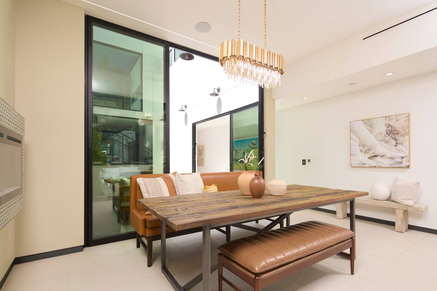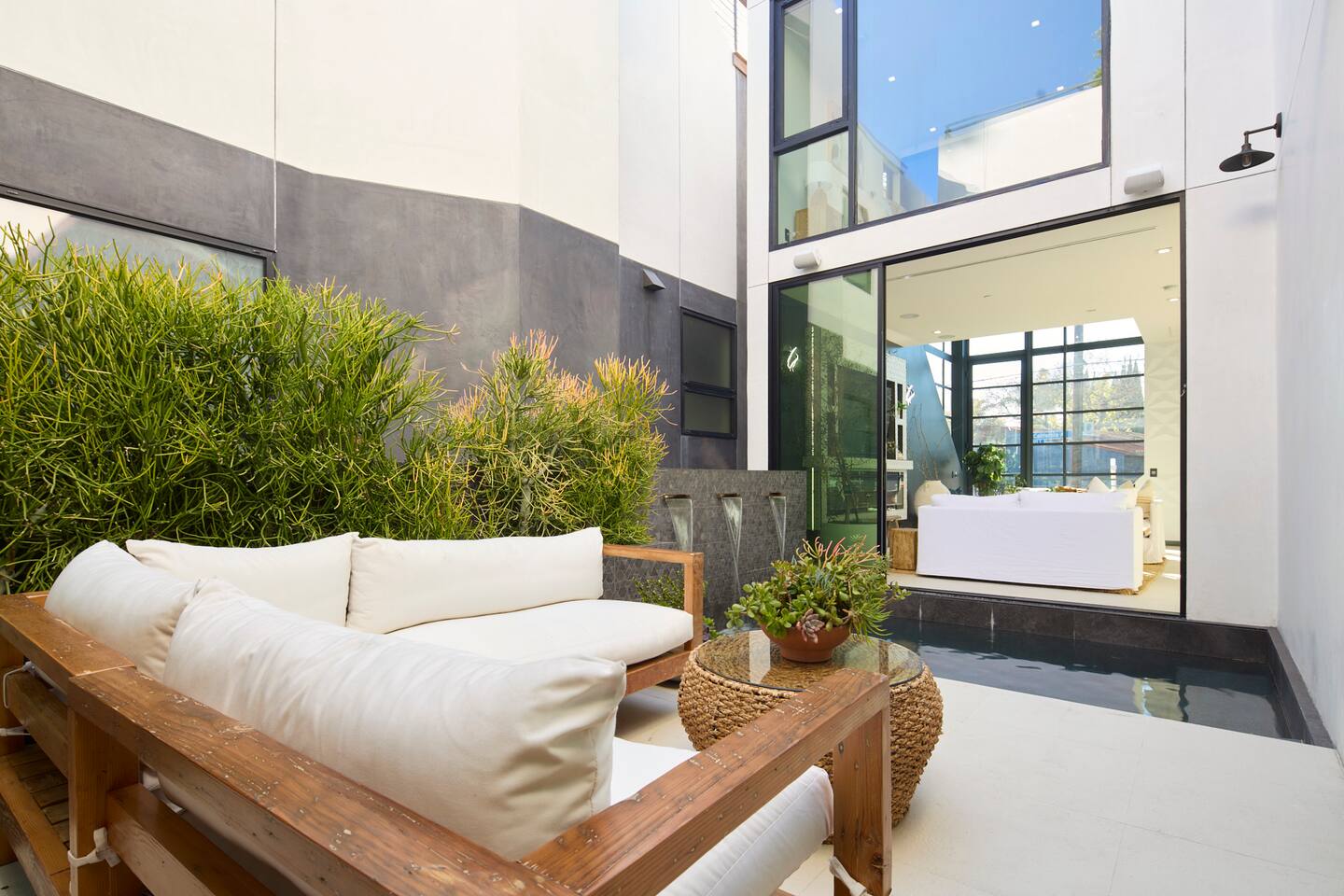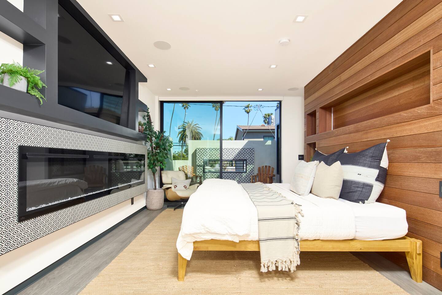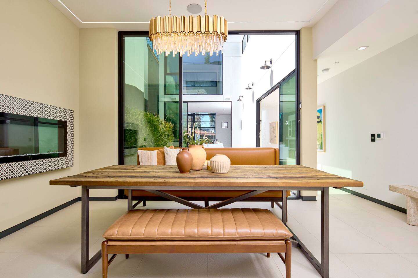 ABSOLUTELY NO PARTIES This impeccably designed 'Glass Lady' offers a luxurious, sunlit live/work oasis just steps from Abbot Kinney and Lincoln Blvd. Its striking design contrasts light-filled spaces with dark accents and eclectic patterns for a unique, modern vibe. The heart of the home is a stunning atrium with indoor-outdoor living and a plunge pool. Enjoy grand ceilings, artistic details, and a chef's kitchen with top-of-the-line appliances. *When you book this property you agree to the following House Rules and guest requirements.* For guest stays of approximately a week or more, Guests understand that someone will come to water the indoor plants during regular business hours. Guests also understand that the pool, maintenance, and/or landscape team will also have exterior access for their regular maintenance work during their stays. PRIOR TO ARRIVAL - Provide a list of all guests staying at the property. - This needs to be done 24 hours before check-in and before access codes are shared. CHECK-IN/OUT & EARLY ARRIVALS - Standard Check-in: 4:00 pm. - Early Check-in: As early as 6:00 a.m. for half the fee of the next night; must be requested as soon as possible but no later than 72 hours before arrival. Depending on bookings, Early Check-in may not be available. - Check-out: 10:00 am; No storage or later pickups are allowed for belongings. ACCESS & LOCKS - Various entry codes are provided at check-in. PARKING - 2 parking garage space available as well as additional one spot parallel parked in front of the garage JACUZZI - Optional heating is available with associated fees. - The fee to heat the Jacuzzi is $100/day (Guests must pay the fee for the entire time not just selected nights as it is programmed in advance and would not change during the stay). For this price, the jacuzzi will be heated to 104 degrees (time to heat est. at 2 hrs). - Notify us 24 hours prior to heating arrangements; less notice might not guarantee service. KITCHEN & APPLIANCES - Cold/hot water is available from the sink dispenser. - Instructions for the Miele coffee maker will be provided. - Monogram microwave, Thor oven, and stovetop ADDITIONAL AMENITIES - Laundry facilities available with specific instructions for use. - Thermostats and heating systems throughout with specific operation instructions. - Electric fireplaces, gas fireplaces, and firepits SAFETY & REGULATIONS - Notify if children (age 6 or younger) or non-swimmers will be present in advance for pool and alarm safety setups at least three days in advance. Host must also confirm. - Trash disposal instructions provided; specific bins for trash and recycling are located in front of the house (You will see a door to open) - No parties or unauthorized events unless pre-approved by the host/owner. Event rates different. - Adhere to the approved number of guests; additional ones need prior approval and may incur charges. - Quiet hours: 10 pm - 8 am. - No commercial filming or photography without permission and extra fee. - Prohibited items: fireworks, flammable substances, illegal substances. - BBQ and firepit instructions provided for safe use. - No smoking inside. This includes the use of tobacco, cannabis, e-cigarettes, etc. - Fire Extinguisher - Under kitchen sink - Under BBQ on rooftop - In the event of a fire, immediately call 9-1-1 - Clear the area of all people and use the fire extinguishers to extinguish the fire yourself. If unable to extinguish, leave immediately to a safe location outside of the property. - Emergency: In the event of an emergency please call 9-1-1.