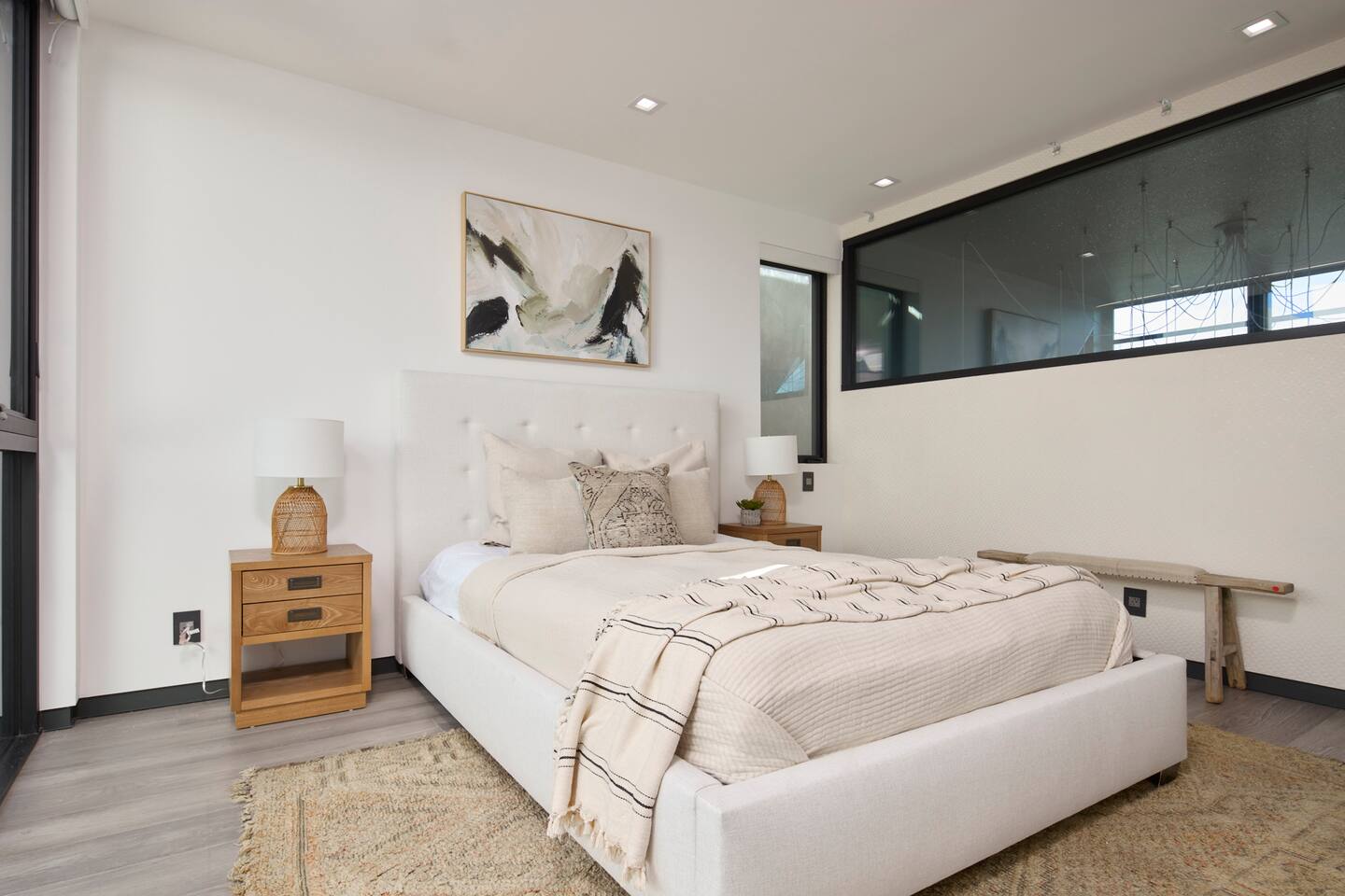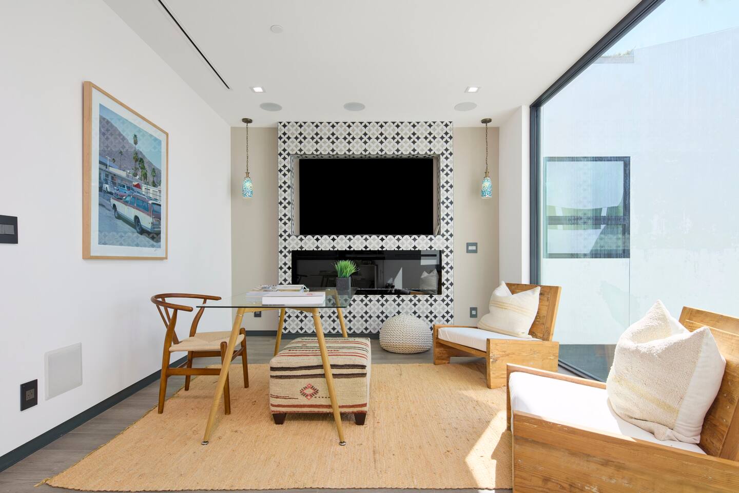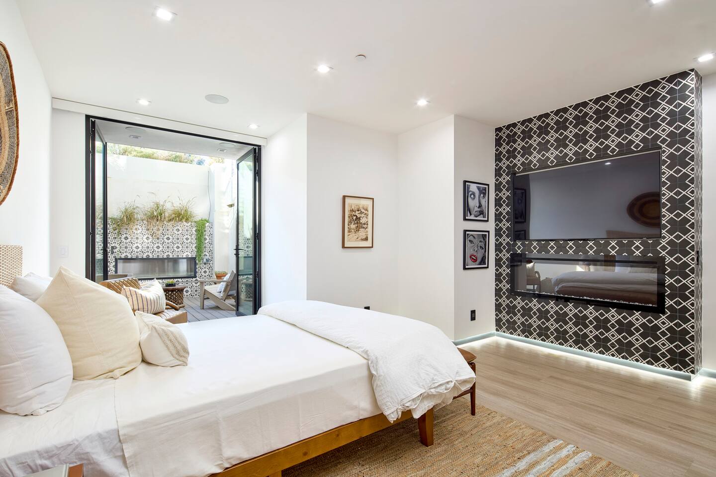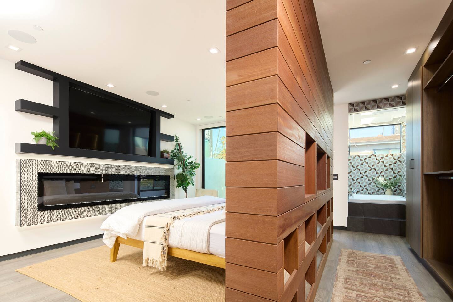 ABSOLUTELY NO PARTIES This impeccably designed 'Glass Lady' offers a luxurious, sunlit live/work oasis just steps from Abbot Kinney and Lincoln Blvd. Its striking design contrasts light-filled spaces with dark accents and eclectic patterns for a unique, modern vibe. The heart of the home is a stunning atrium with indoor-outdoor living and a plunge pool. Enjoy grand ceilings, artistic details, and a chef's kitchen with top-of-the-line appliances. *When you book this property you agree to the following House Rules and guest requirements.* For guest stays of approximately a week or more, Guests understand that someone will come to water the indoor plants during regular business hours. Guests also understand that the pool, maintenance, and/or landscape team will also have exterior access for their regular maintenance work during their stays. PRIOR TO ARRIVAL - Provide a list of all guests staying at the property. - This needs to be done 24 hours before check-in and before access codes are shared. CHECK-IN/OUT & EARLY ARRIVALS - Standard Check-in: 4:00 pm. - Early Check-in: As early as 6:00 a.m. for half the fee of the next night; must be requested as soon as possible but no later than 72 hours before arrival. Depending on bookings, Early Check-in may not be available. - Check-out: 10:00 am; No storage or later pickups are allowed for belongings. ACCESS & LOCKS - Various entry codes are provided at check-in. PARKING - 2 parking garage space available as well as additional one spot parallel parked in front of the garage JACUZZI - Optional heating is available with associated fees. - The fee to heat the Jacuzzi is $100/day (Guests must pay the fee for the entire time not just selected nights as it is programmed in advance and would not change during the stay). For this price, the jacuzzi will be heated to 104 degrees (time to heat est. at 2 hrs). - Notify us 24 hours prior to heating arrangements; less notice might not guarantee service. KITCHEN & APPLIANCES - Cold/hot water is available from the sink dispenser. - Instructions for the Miele coffee maker will be provided. - Monogram microwave, Thor oven, and stovetop ADDITIONAL AMENITIES - Laundry facilities available with specific instructions for use. - Thermostats and heating systems throughout with specific operation instructions. - Electric fireplaces, gas fireplaces, and firepits SAFETY & REGULATIONS - Notify if children (age 6 or younger) or non-swimmers will be present in advance for pool and alarm safety setups at least three days in advance. Host must also confirm. - Trash disposal instructions provided; specific bins for trash and recycling are located in front of the house (You will see a door to open) - No parties or unauthorized events unless pre-approved by the host/owner. Event rates different. - Adhere to the approved number of guests; additional ones need prior approval and may incur charges. - Quiet hours: 10 pm - 8 am. - No commercial filming or photography without permission and extra fee. - Prohibited items: fireworks, flammable substances, illegal substances. - BBQ and firepit instructions provided for safe use. - No smoking inside. This includes the use of tobacco, cannabis, e-cigarettes, etc. - Fire Extinguisher - Under kitchen sink - Under BBQ on rooftop - In the event of a fire, immediately call 9-1-1 - Clear the area of all people and use the fire extinguishers to extinguish the fire yourself. If unable to extinguish, leave immediately to a safe location outside of the property. - Emergency: In the event of an emergency please call 9-1-1.